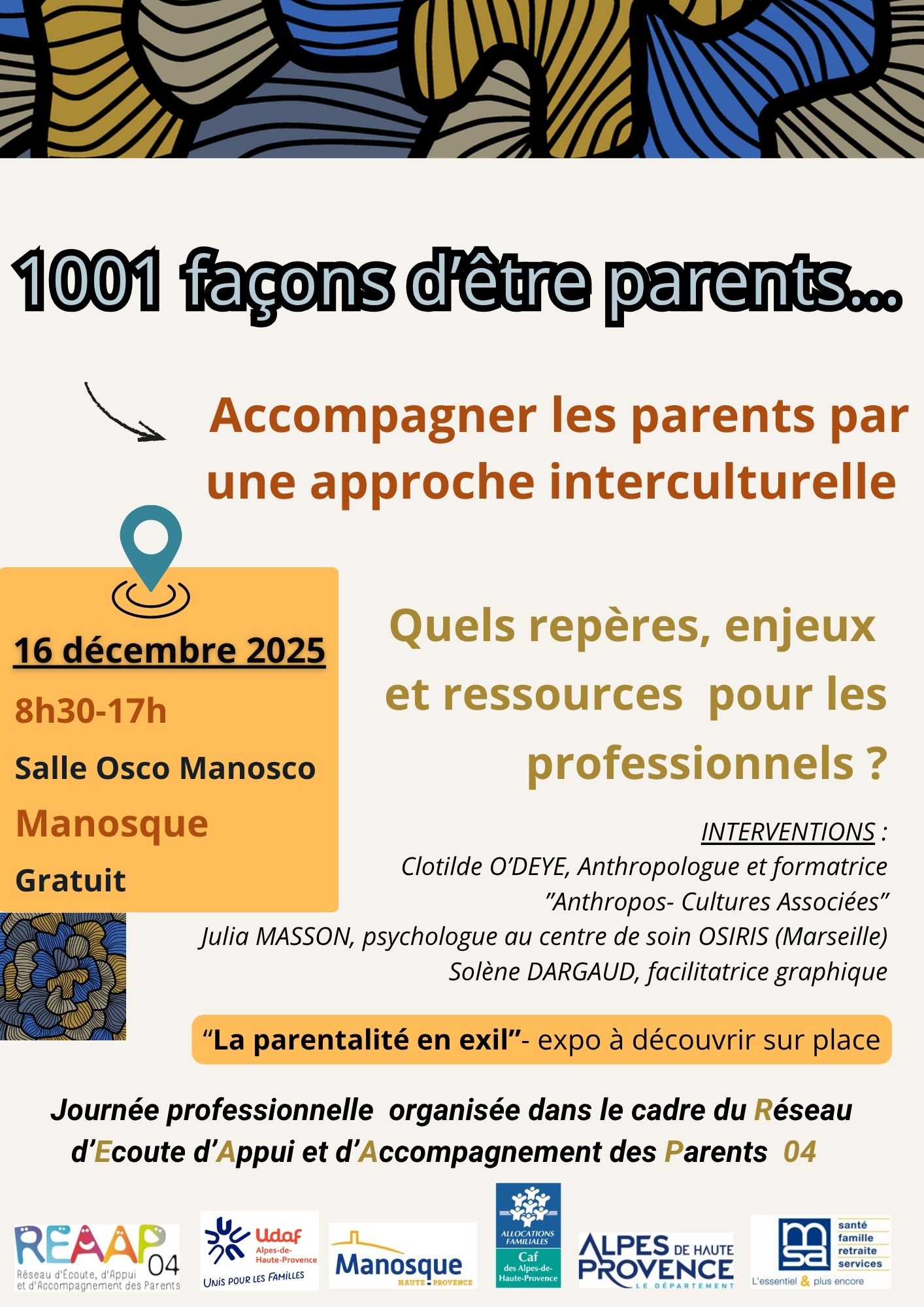 Cette journée sera dédiée à l’accompagnement à la parentalité, en croisant les enjeux d’interculturalité qui traversent nos pratiques. Elle constitue une occasion précieuse de se retrouver entre professionnels pour :