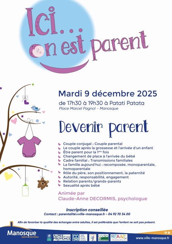 la prochaine rencontre "ici on est parent" à Manosque